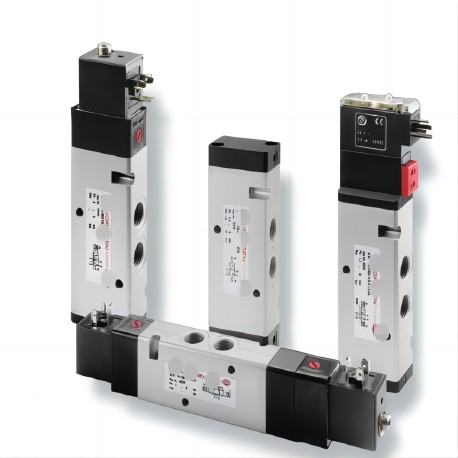 Compact design, high flow, long life. A single body enables the integration of two 3/2 valves with extremely short switching times and a life of 40 million reversals.